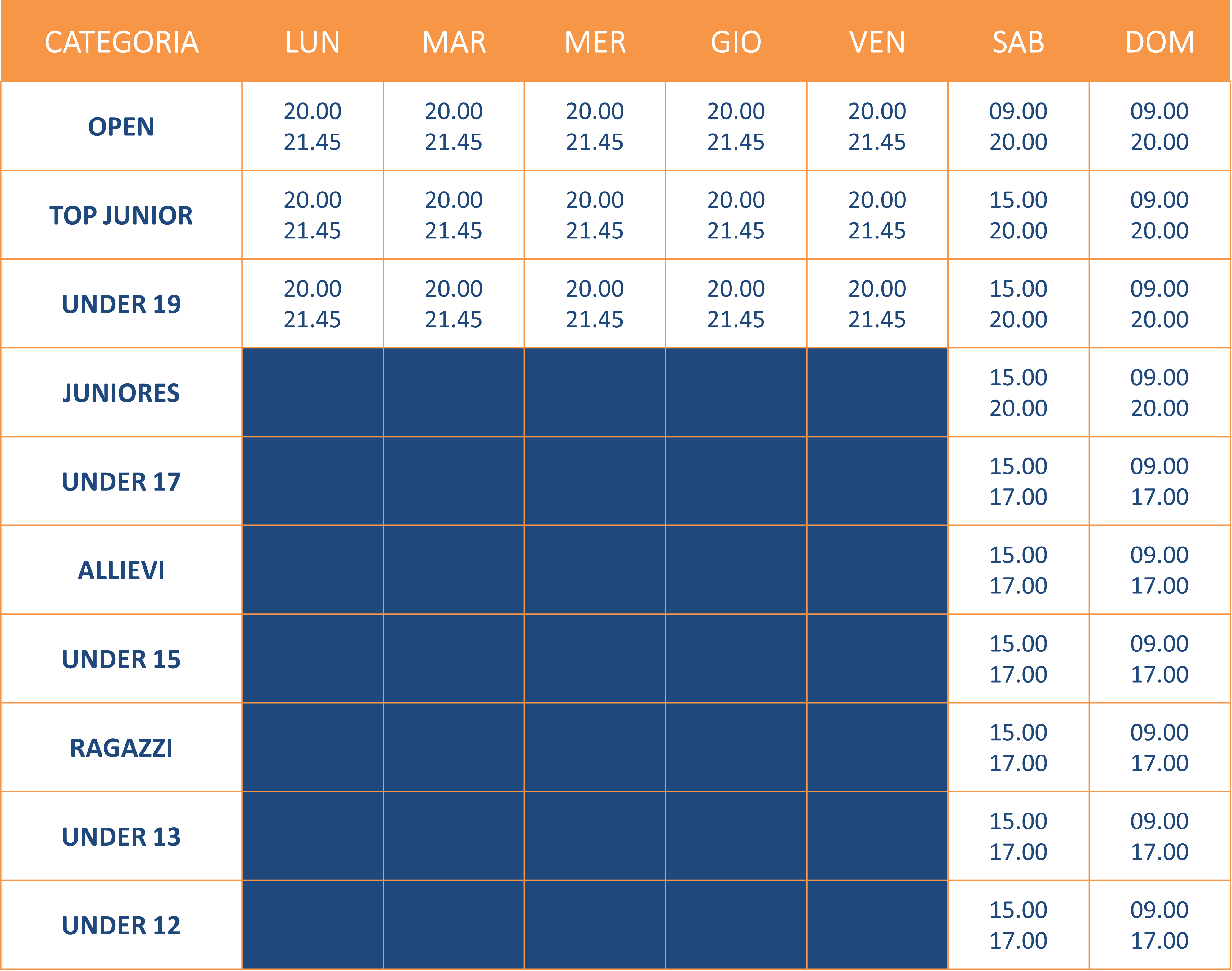CLICCA QUI per scoprire gli orari in cui è possibile disputare gli incontri