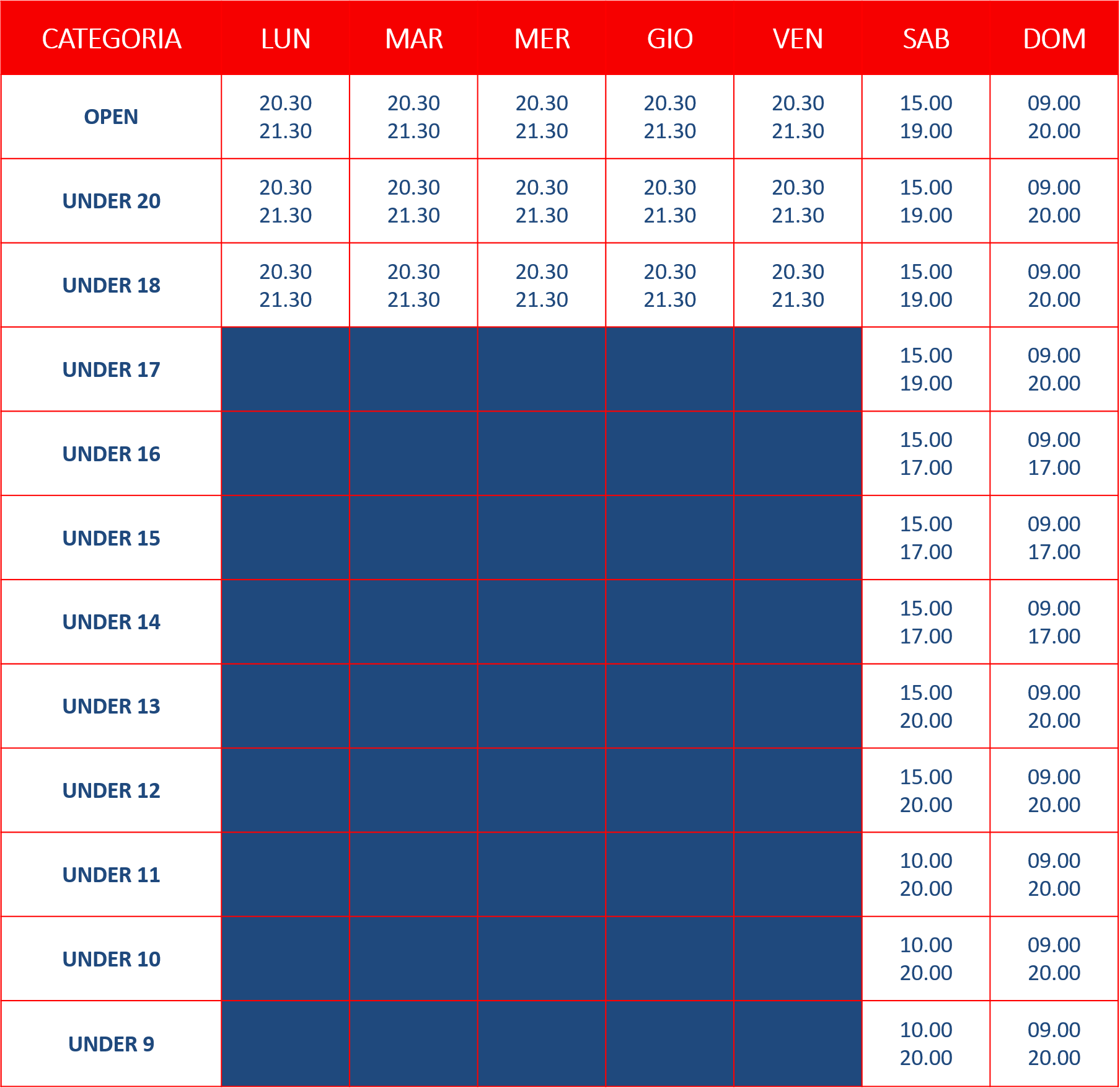 CLICCA QUI per scoprire gli orari in cui è possibile disputare gli incontri