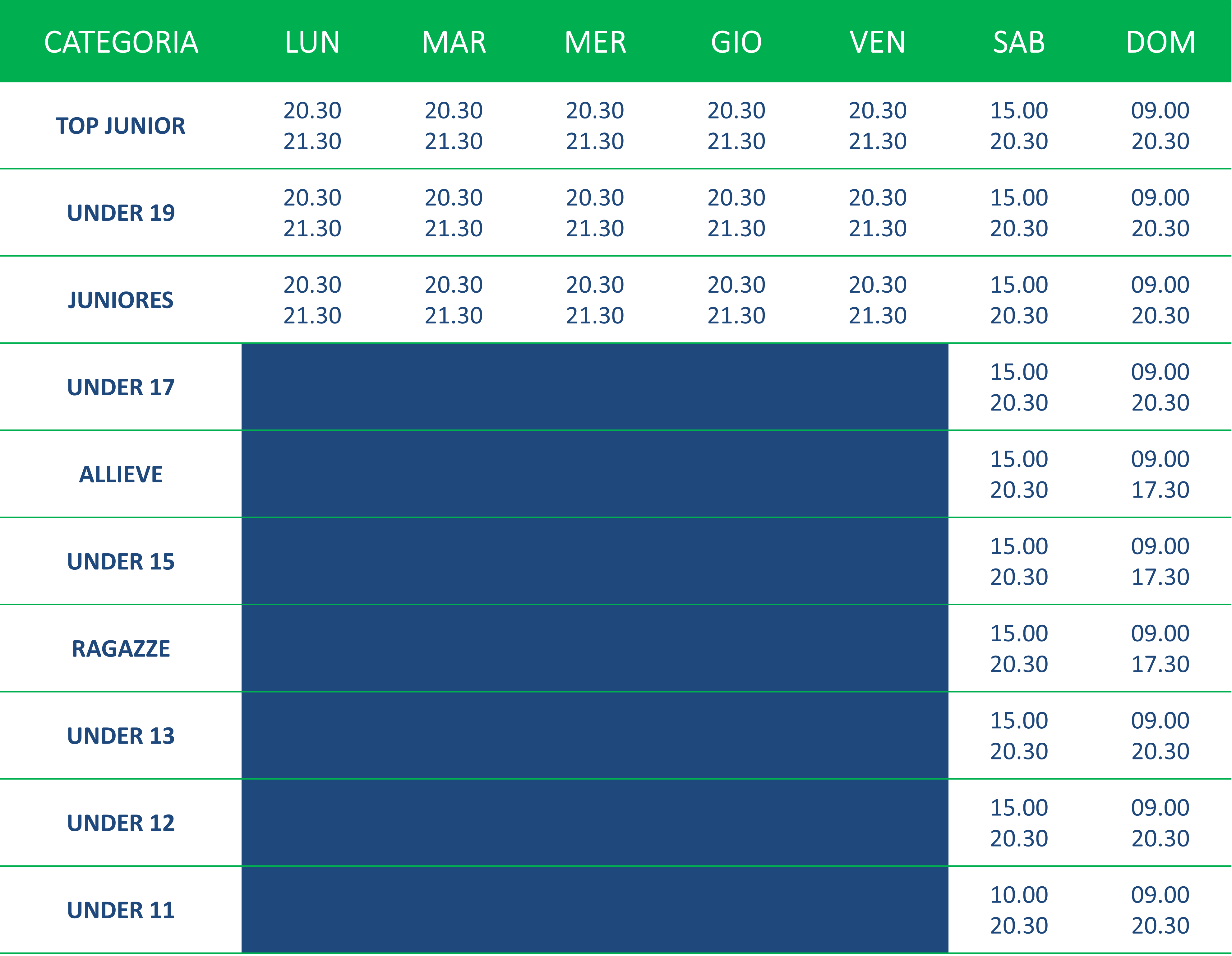 CLICCA QUI per scoprire gli orari in cui è possibile disputare gli incontri